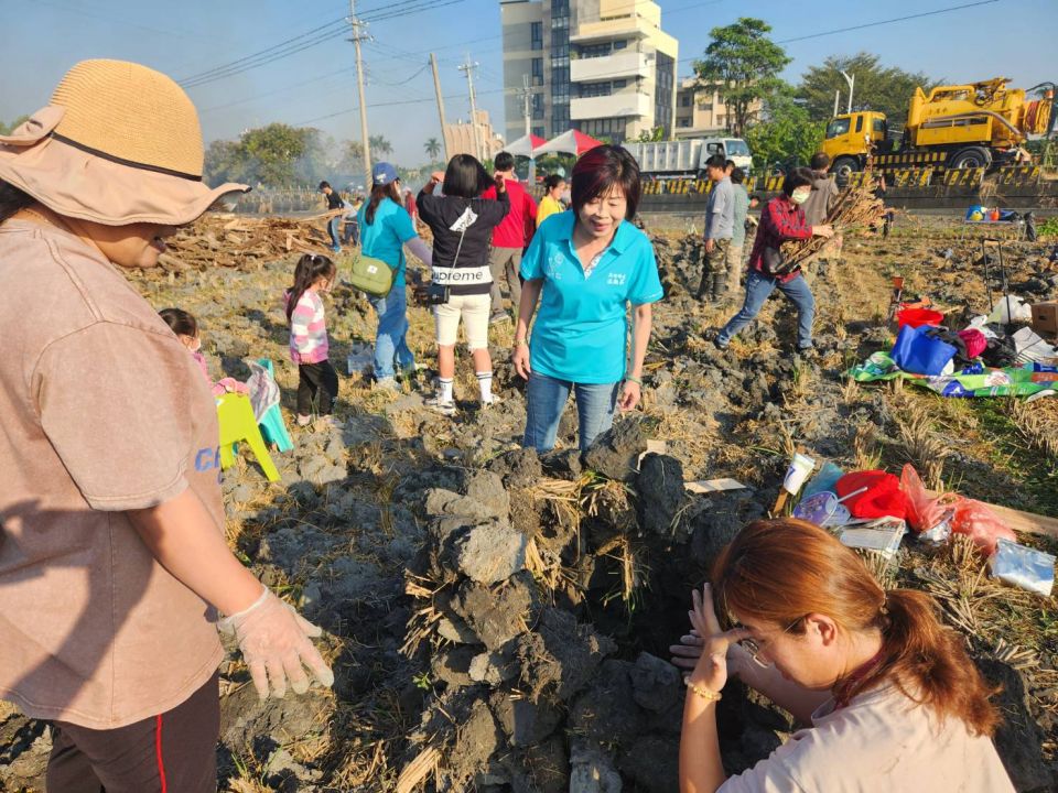 溪州鄉公所舉辦溪州提拔泥焢窯趣活動,吸引民眾帶著全家大小在田裡建窯、焢窯烤番薯跟玉米,體驗農村生活。(記者葉靜美攝)