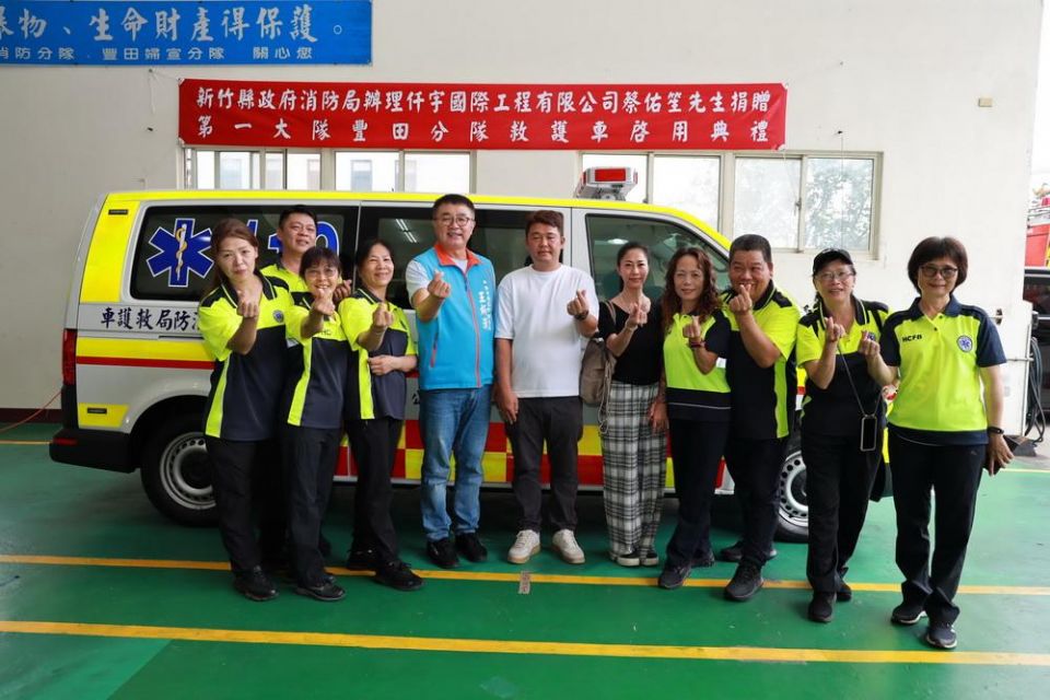 (記者蔡芷羚/新竹報導)仟宇國際工程有限公司負責人蔡佑笙18歲時隻身從台北南下新竹打拼,從版模小工人開始做起,經過不斷努力,20年後搖身一變成為一間公司的開創者。27日捐贈新竹縣政府消防局豐田消防分隊1輛總價440萬元救護車,而這也是該局有史以來最年輕的救護車捐贈者。