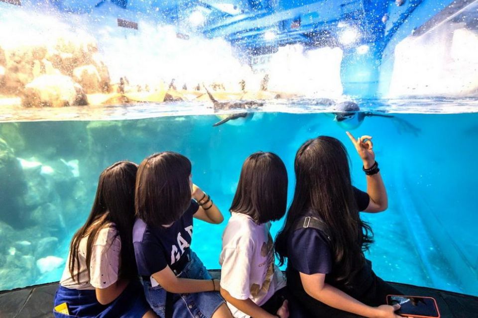 而後方隔間為飼育員用隔板特別為企鵝們打造的「愛的小窩」,讓配對成功的企鵝情侶們在隔間用鵝卵石搭建各自的愛巢,安全的孕育下一代。適逢中秋節,企鵝繁殖季出現的有趣景象也變成另類的一家團圓。館內每天上午11點,以及下午3點會於極地區企鵝缸前進行餵食解說活動,透過解說員與飼育員的對答,讓民眾能更認識企鵝的一些冷知識。